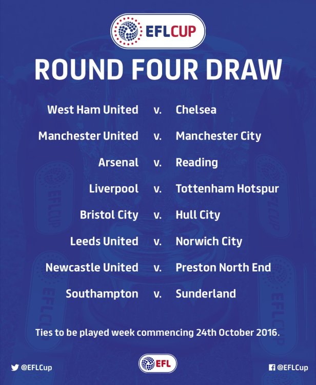 It was not an easy draw for Mourinho’s United as they will play neighbours Manchester City. It will be another Jose-Pep showdown. Who will progress to the quarter finals?