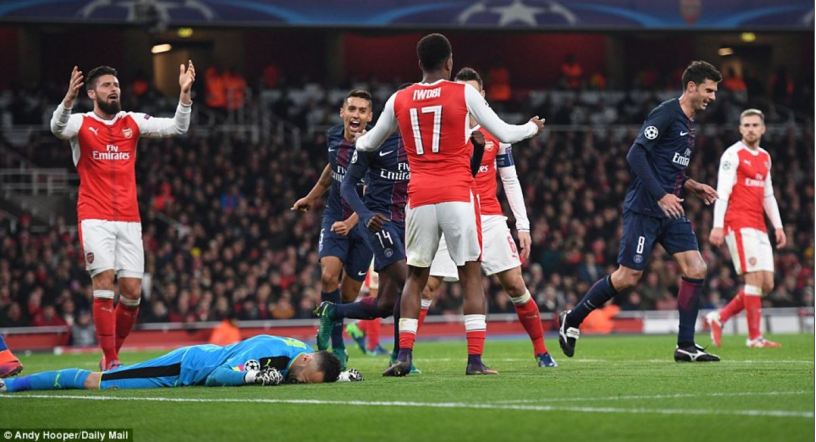 Edison Cavani tapped into an open net in the 18th minute after Thioga Motta picked out Matuidi’s run between Mustafi and Jenkinson before squaring for the Uruguayan striker. Arsenal were restricted and pegged back by PSG but managed to draw level with a late penalty in the first half. Giroud’s tackle up field found Ozil who found Sanchez via a reverse pass before the Chilean was clipped by Krychowiak. The referee pointed to the spot before Giroud scored the resulting penalty.