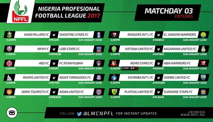 Hostilities continue in the Nigeria Professional Football League on Sunday for Matchday 3. See fixtures below.