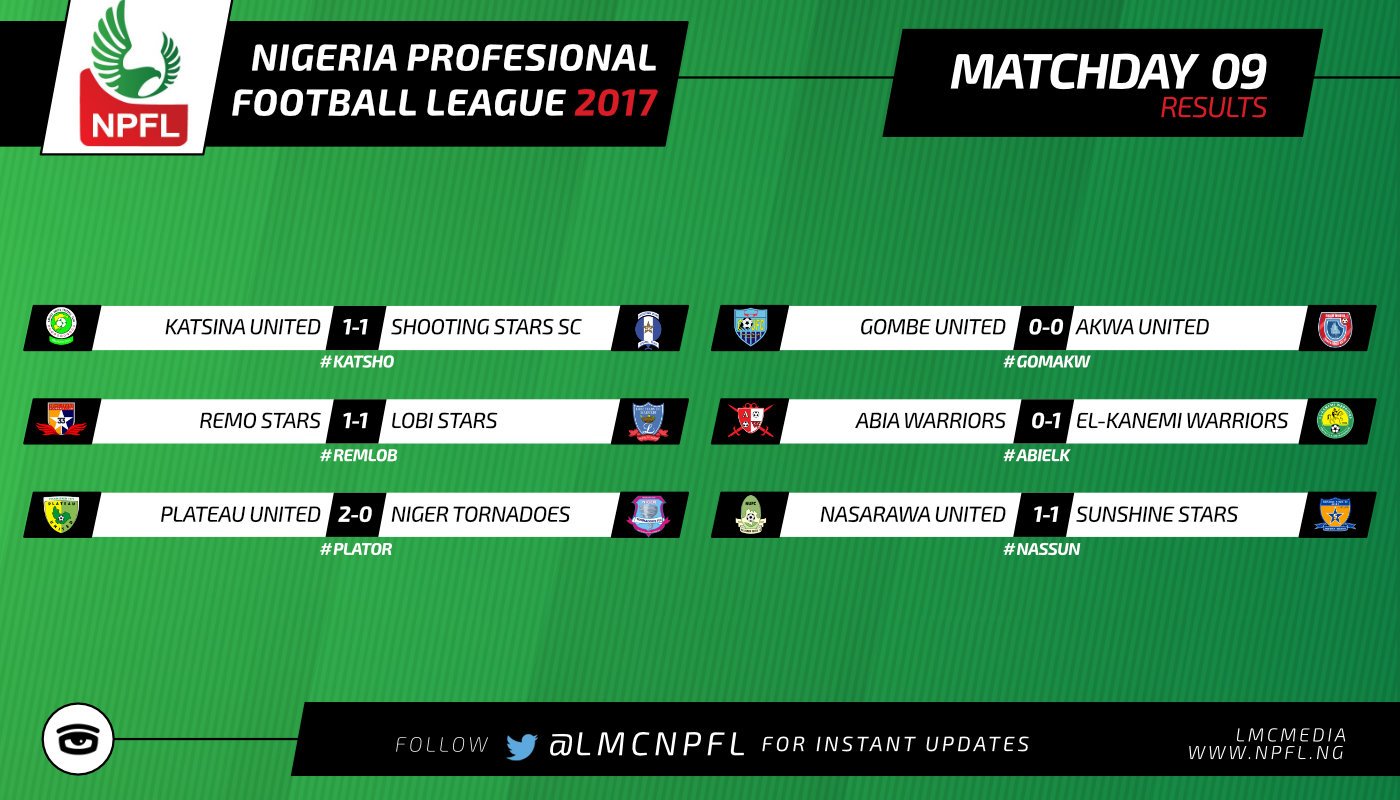 In the NPFL, El-Kanemi Warriors stunned Abia Warriors in Umuahia to record their first away win in the NPFL since July 2013. Plateau United were 2-0 winners of Niger Tornadoes. The remaining matches ended in draws.